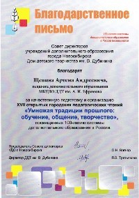 Организация: Муниципальное бюджетное учреждение дополнительного образования города Новосибирска "Дом детского творчества им. А. И. Ефремова"
